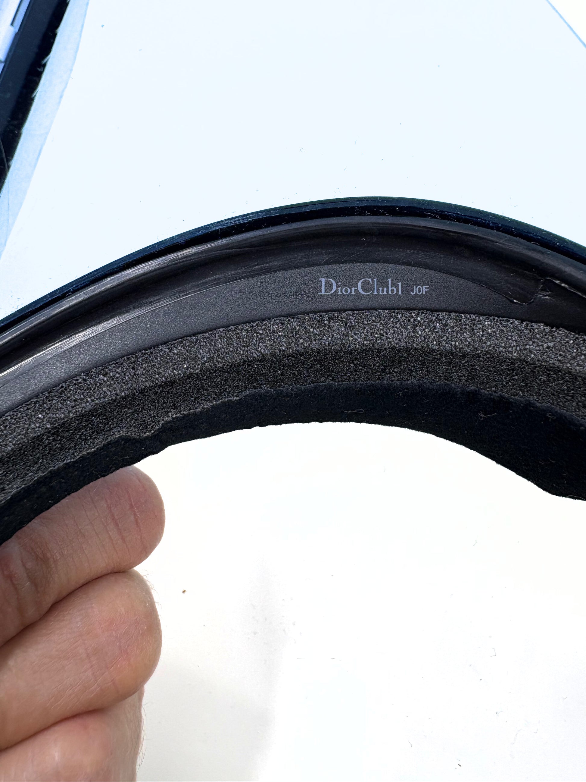 Dior visor hat featuring a chic blue translucent brim that shields your face from the sun in style. Designed with soft internal foam for comfort and an adjustable strap for the perfect fit. Like new condition. Comes complete with box, ribbon, dust bag, and authenticity cards.
